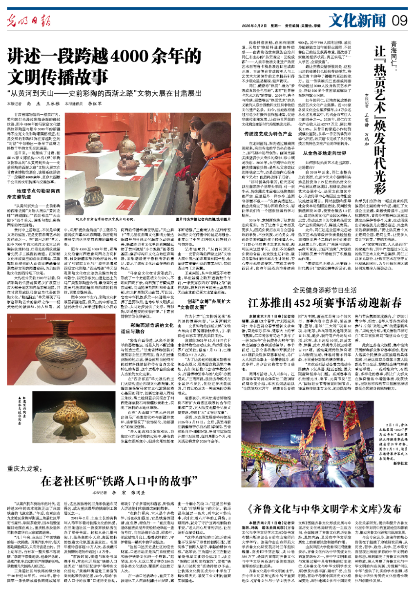 “马家窑文化在甘肃形成后,形成了一个史前区域文化中心,不断向四周扩散,向西到了青藏高原东南部,向南延伸到四川和云南北部,向北扩展到天山南麓,可以说,它在中华民族多元一体进程中发挥了重要作用,也为中华文明多点整合、共同进步提供了支撑。而彩陶,则是重要的实物佐证。”甘肃省博物馆馆长班睿说。