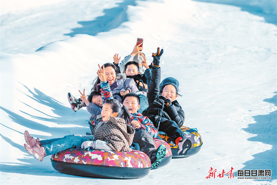 近日,游客在张掖市甘州区冰雪世界丝路明珠欢乐谷游玩,享受滑雪乐趣。新甘肃·甘肃日报通讯员 杨潇