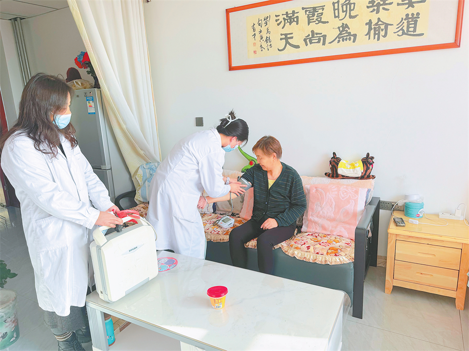 除了日常康复,医疗服务同样保障到位。中心每周定期邀请县医院医护人员上门,为老人开展健康检查和问诊服务,全方位守护老年人的身体健康。“老人家,您最近血压控制得好着呢,记得按时吃药。”在老人房间,医护人员为老人进行健康查体后,耐心叮嘱注意事项。