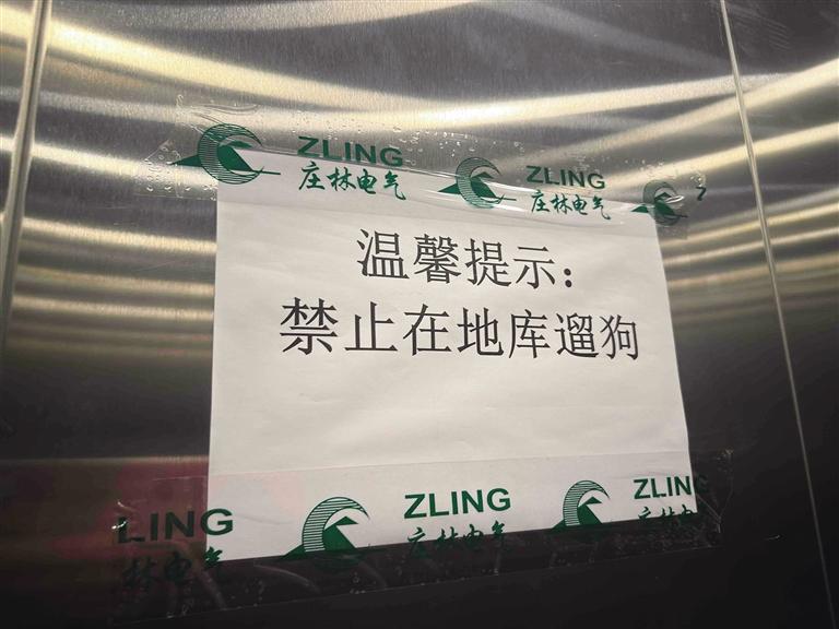 “我们小区地库光线本来就暗,拐角又多,上次我差点撞到突然蹿出来的狗。”正在取车的业主李女士告诉记者,她曾多次在业主群反映此类问题,但始终没有得到有效解决。在该小区地下车库入口处,记者看到有物业张贴的“禁止遛狗”标识。