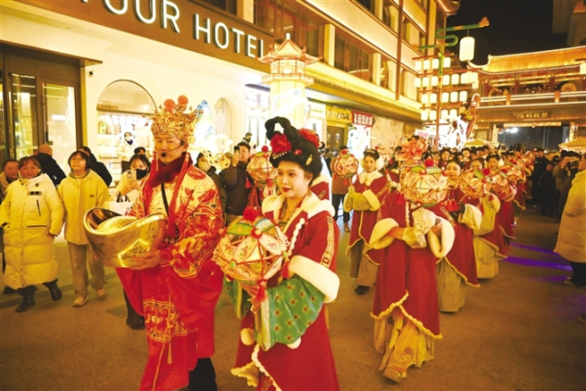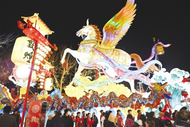 随着春节临近,敦煌夜市张灯结彩,年味十足。
