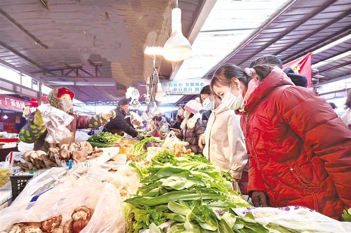 春节临近,我市各大市场水果、蔬菜供应充足,价格平稳,切实满足了市民的采购需求。图为2月1日,在金川区长泰市场早市上,市民们挑选自己所需菜品。 记者 张宏斌 摄