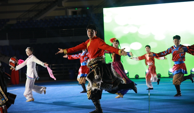 开幕式现场气氛热烈,精彩纷呈。各代表队精神抖擞、意气风发,陆续入场亮相。随后,大型武术情景演武《中华武魂》、临夏本土的民族舞蹈以及灯光秀等接连上演。此外,开幕式还特邀了数位在历届“甘小侠”大会中脱颖而出、如今已在全国赛事中斩获佳绩的优秀运动员代表进行返场表演,生动诠释了大会“传承与接力”的核心精神。
