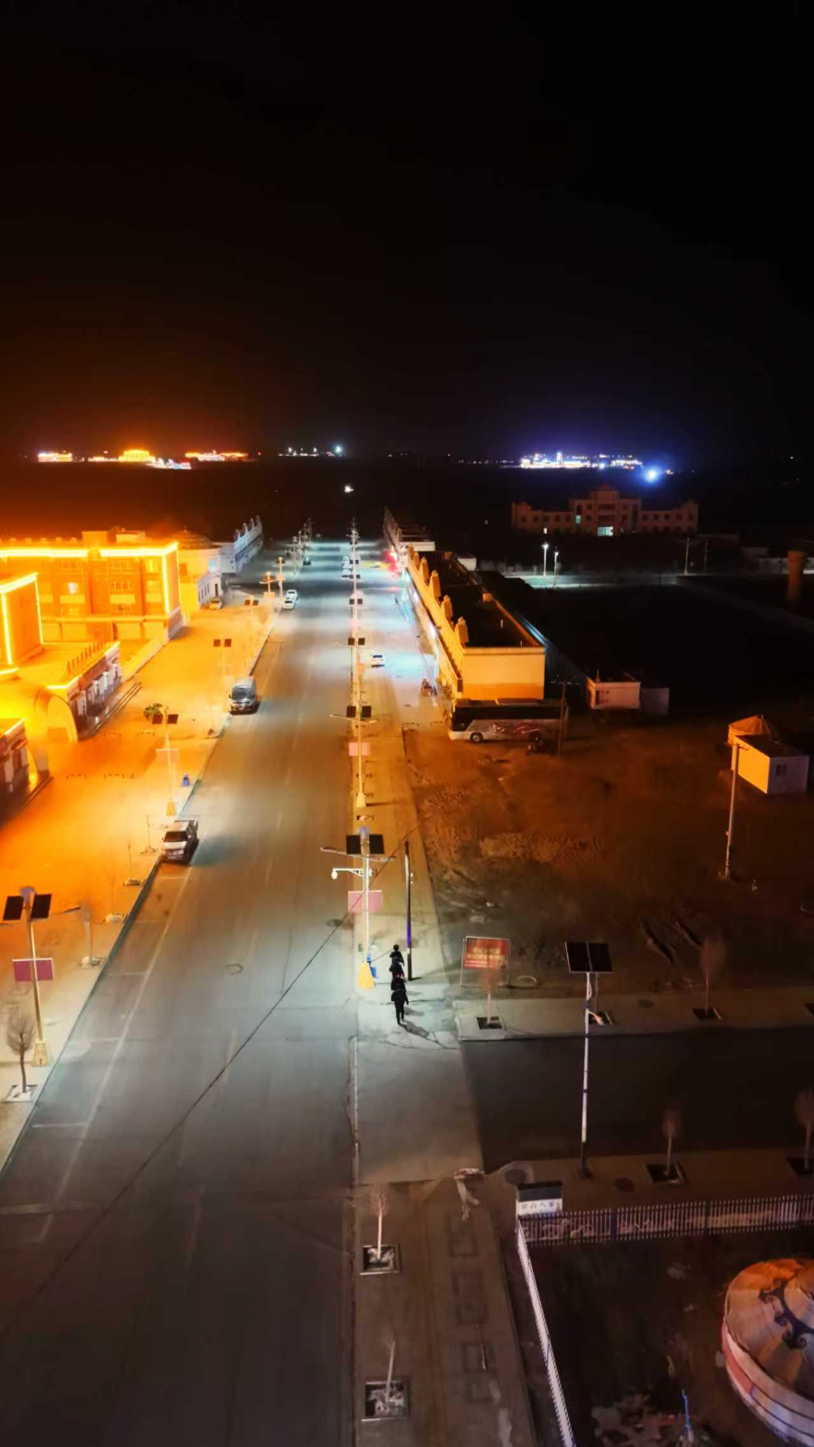 正因巨大的夜幕,马鬃山镇子上的灯光才显得那么有暖意。一条约两公里的主街,两边的酒店饭馆都用灯带勾勒着横竖笔直的线条。戈壁边城,确实棱角分明。