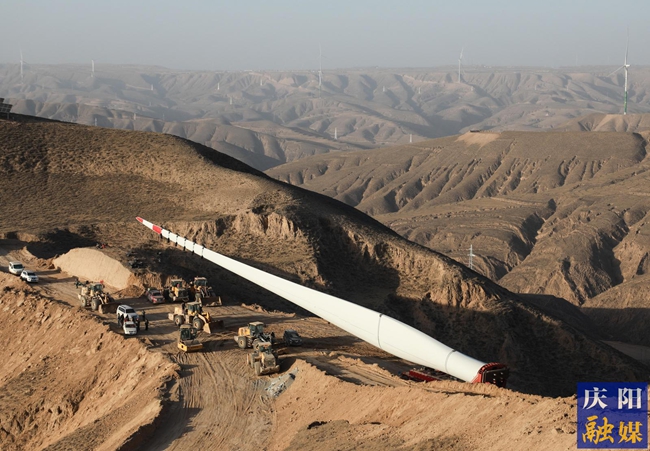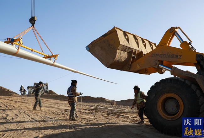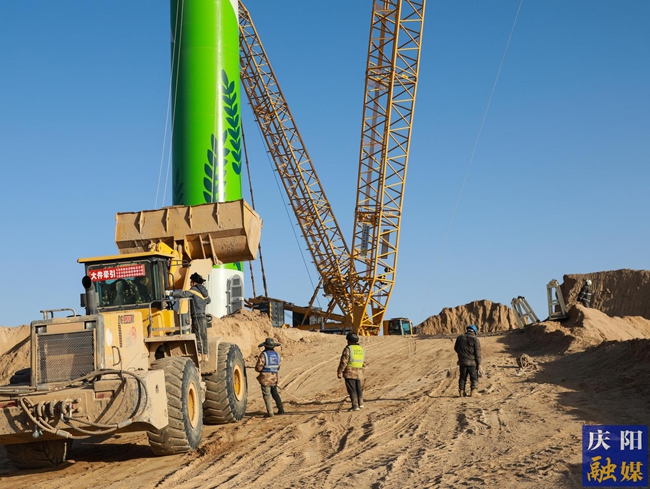 一台台大型吊机巍然矗立,钢铁巨臂舒展起落,吊装、组装、调试等工序有序衔接;各类工程车辆往来穿梭,数名施工人员各司其职,在塔筒、机舱、叶片之间精准操作,协同作战……在环县罗山川乡华能陇东能源基地E2项目施工现场,山间寒风凛冽、年关临近,却挡不住施工队伍顶寒鏖战、抢抓工期的火热干劲,现场一派热火朝天的繁忙景象。