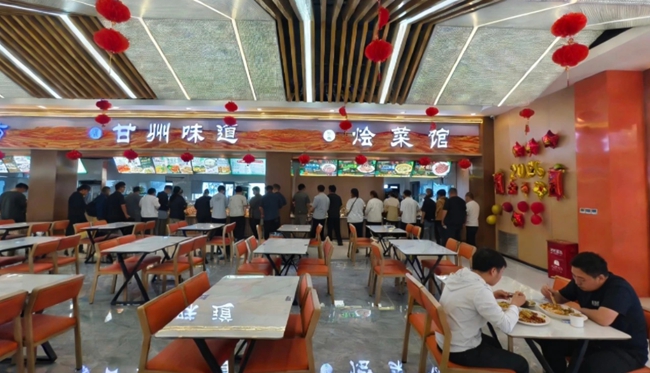 颜值出圈的背后,功能服务更见真章。风味档口集群解锁味蕾狂欢:干拌面、牦牛壮骨面劲道十足,炒羊肉、手抓羊肉鲜香扑鼻,羊肉粉汤、牛肉砂锅暖透脾胃,还有彩虹咖啡、丹霞甜筒等限定美味,一口下肚,驱散旅途的疲惫。“陇货甘味”专区藏着满满的甘肃特色,丹霞丝巾、彩虹文创让人“疯狂种草”。“司机之家”、充电桩、免费Wi-Fi与按摩椅一应俱全,让长途旅行告别续航焦虑,补给站变身暖心歇脚地。