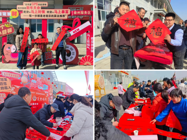 兰州北服务区张灯结彩,年味浓郁。凉州小调悠扬开嗓,唱腔质朴悠扬,川剧变脸精彩纷呈,脸谱瞬息变幻,引得孩子们惊叹连连,传统戏曲与新春氛围交融,让旅途中的片刻停靠充满惊喜。此外,秦州、上湾、平凉、庆阳、礼县等服务区也纷纷邀请本地书法老师,现场挥毫泼墨,写春联、送福字,为奔波在途的货车司机送上最朴素而真诚的年礼。一位司机师傅接过春联,当即贴在车上,笑着说:“这下好了,福气一路跟着跑!”
