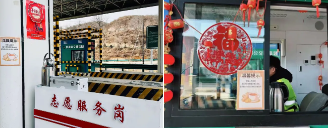 瑞雪挡不住归途,严寒隔不断温情。各收费站与服务区同步升级便民服务举措,兼顾车流疏导与服务保障,让“最美月季花”在风雪中绽放,用细致服务为春运归途注入满满暖意。收费广场上,工作人员顶风冒雪清扫车道与广场积雪,确保车辆通行安全;站区内,大红灯笼高高挂起,喜庆的年画张贴整齐,五彩的彩灯环绕门廊,浓浓的年味扑面而来,为奔波在返乡路上的司乘驱散疲惫。便民服务台备齐了热水、方便面、应急药品、车辆维修工具等物资,并为过往司乘送上热姜茶。服务区内,加油站提前备足各类油品,增设加油通道,全力保障车辆能源补给,满足高峰时段车辆加油需求;餐饮区、休息区温暖整洁,工作人员热情接待每一位旅客,优化服务流程,减少司乘等候时间,用细致服务驱散冬日寒意。