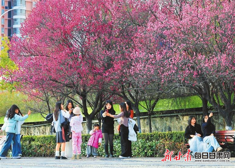 陇南市滨江公园梅花盛开,市民纷纷前来观赏拍照。新甘肃·甘肃日报通讯员 冉创昌