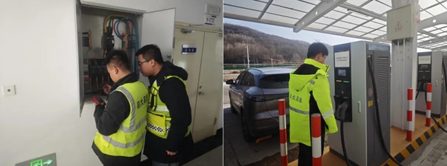 返程期间,车流激增,道路保畅、隐患排查、应急处置任务艰巨。为保障各收费站机电设施、服务区充电桩、全线桥梁、隧道、路面及交安设施安全稳定,彭大、灵华项目公司道路巡检队开启24小时不间断巡查,采用“车巡+步巡+无人机巡查”模式,实现空地一体、立体防控。队员们迎着寒风、踏着夜色昼夜轮岗,穿梭在两条高速的各个路段,以高度的责任感守护返程之路。