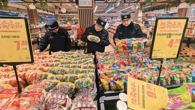 城关区督查组深入兰州亚欧超市、兰州新世界汇美百货有限公司、“2026全国网上年货节”分会场、兰州久正医药有限公司荣江郡店、宋家滩肉菜市场、南关民族风味夜市及辖区烟花爆竹销售点,重点检查食品原料采购索证索票、药品储存养护、商品明码标价等情况,严查烟花爆竹经营许可、进销货台账,全面排查违禁及不合格产品。