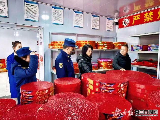 检查组人员深入经营场所开展烟花爆竹安全隐患排查。