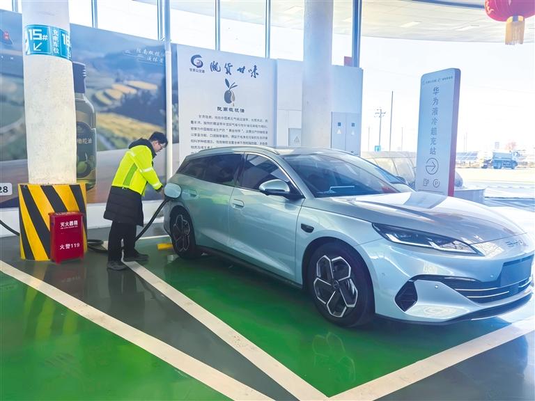 在春节返程高峰,新能源充电需求持续攀升。甘肃公交建集团所属甘肃省高速公路服务集团有限公司(以下简称“高服集团”)科学施策、全力保供,以高效充电保障与贴心温馨服务,为新能源车主加满电量、护航归途,让节日返程路畅通有序、暖意相伴。