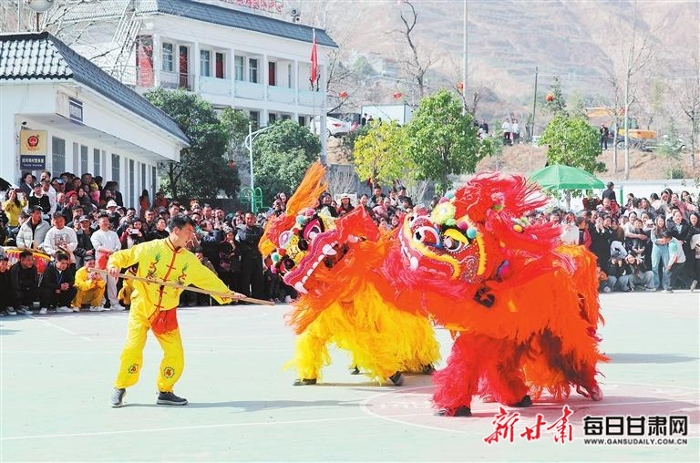 市民在陇南市武都区两水镇段河坝村文化广场观看社火表演。新甘肃·甘肃日报通讯员 冉创昌
