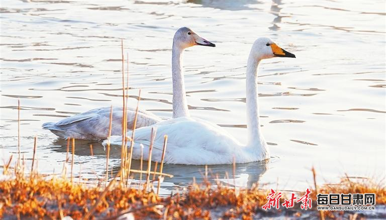天鹅在达川镇三江口优雅游弋。新甘肃·甘肃日报记者 顾丽娟