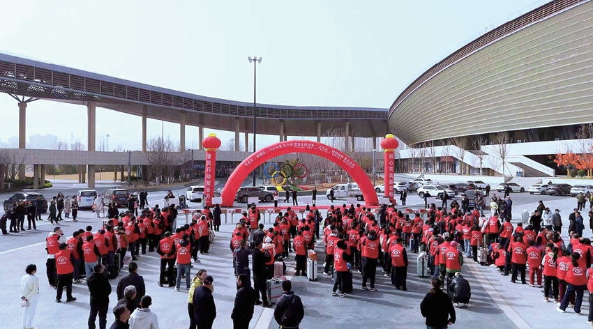 2月21日,平凉市体育运动公园北广场“点对点”务工输转发车仪式现场 钱彦虎 摄