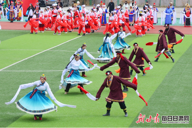 下午1时,社火表演在肃南县少数民族传统项目体验区运动场正式开演。活动分为“祥云开泰 骏马迎新”“美美与共 各美其美”“同心筑梦 齐步致远”三个篇章,生动展现肃南民族风情与文化魅力。