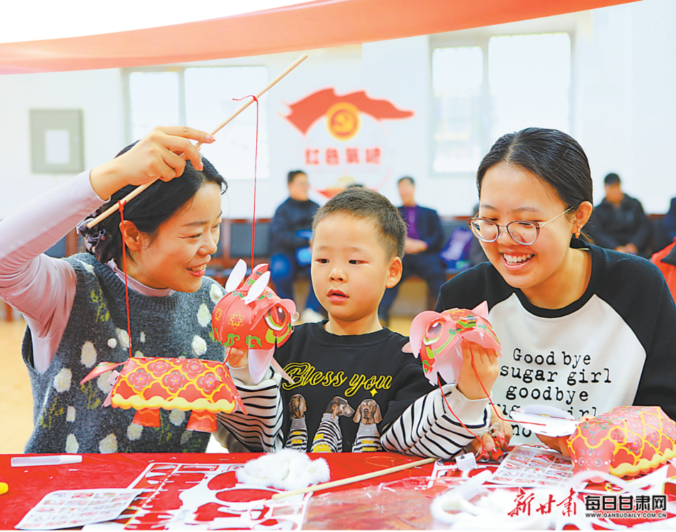 嘉峪关五一社区服务中心组织居民制作花灯。新甘肃·甘肃日报通讯员 马玉福