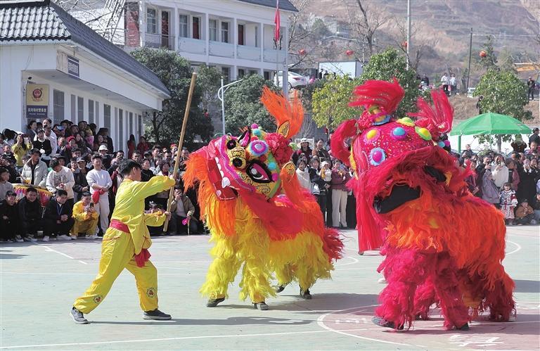 金鼓齐鸣辞旧岁,龙腾狮舞贺新春。2月24日,武都区两水镇段河坝村文化广场上,锣鼓喧天、人声鼎沸,热闹喜庆的社火表演盛装登场,喜迎新春。舞龙舞狮、踩高跷、划旱船、扭秧歌、掌灯等传统社火节目轮番上演,为广大群众献上一场年味十足、精彩纷呈的民俗文化盛宴。