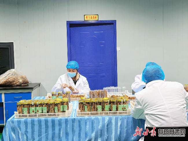 工人正在分拣、包装灵芝片。(本文图:新甘肃·甘肃日报记者 李永萍 摄)
