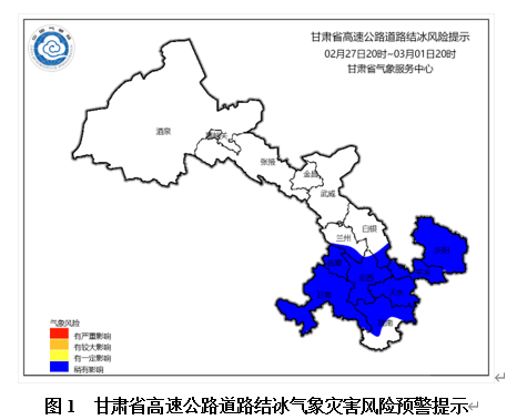 另讯,甘肃省气象局、甘肃省交通运输厅、甘肃省公安厅交通管理总队今天联合发布甘肃省高速公路道路结冰气象灾害风险预警提示。预计48小时内,受降雪影响,G1816乌玛(康家崖-合作段)、S34双达、S32临大、S38王夏、G30连霍(文峰至定西段、东岔至鸳鸯段)、G8513平绵(华亭至静宁段、天水至秦安段)、G22青兰、S25静天、S11泾华、G85银昆、S28灵华、G70福银、G69银百、S15吴平、S60西会、G6京藏(兰州至海石湾段)、G75兰海(临洮至武都段)、S14陇渭、S42陇漳、S46通定高速部分路段有道路结冰,风险较低,对交通出行稍有影响,需要注意行车安全!