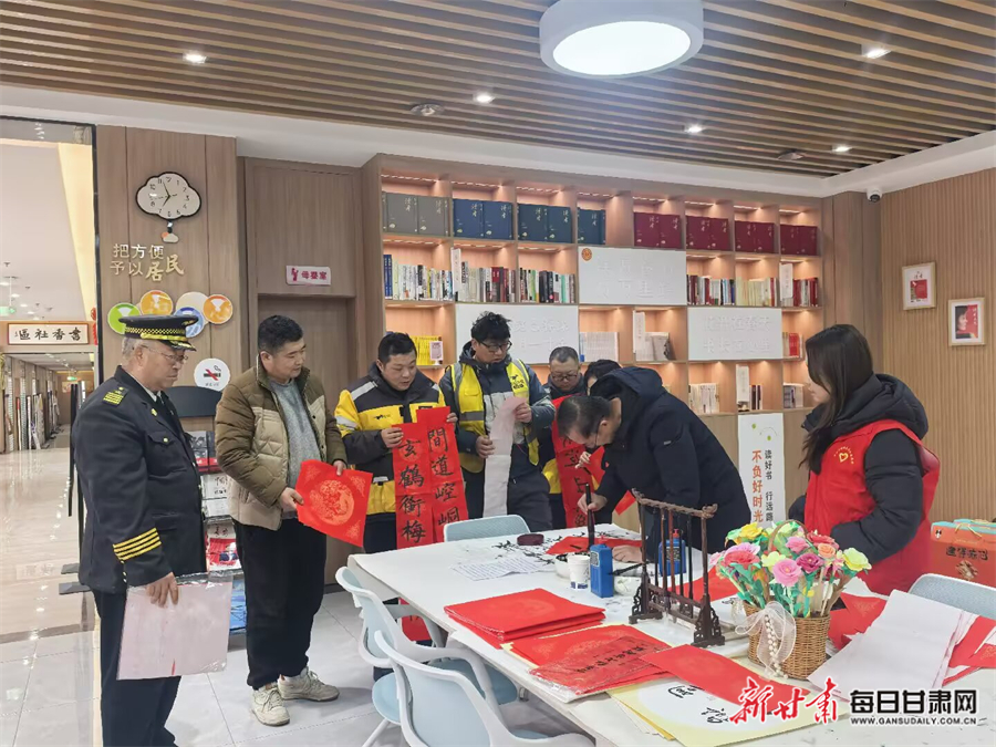 社区组织书法爱好者为新就业群体写春联送福字