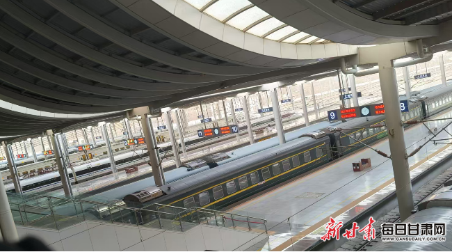 兰州西客站的站台干净整洁。(本文图片除署名外,均由新甘肃·甘肃日报记者王君洁摄)