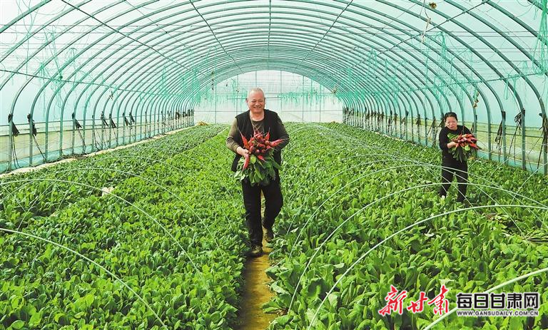 近日,成县店村镇大寨村农民采摘蔬菜。新甘肃·甘肃日报通讯员 李旭春