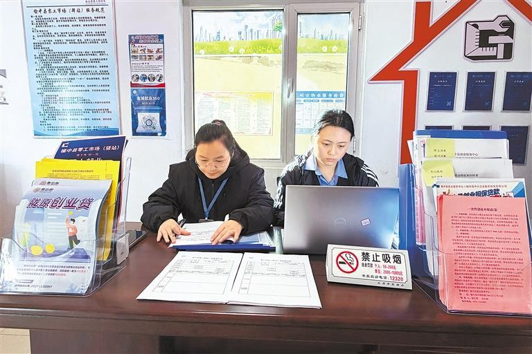 榆中县城关镇幸福家园零工驿站内,工作人员正忙碌地为前来咨询的居民匹配岗位。