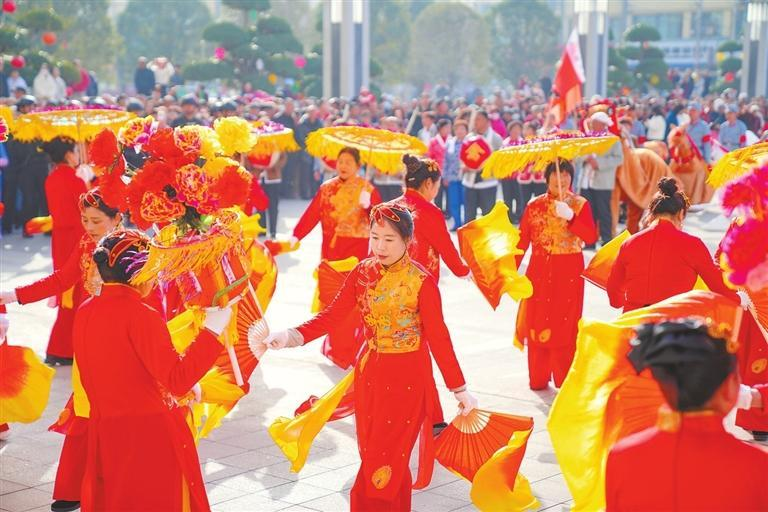 正月里的社火锣鼓喧天,喜气洋洋。“扭秧歌”“耍狮子”“舞龙”“惊春牛”等长期流传民间的社火活动,充满了浓郁的民俗风情。