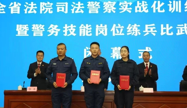 2025年,兰州中院司法警察支队紧紧围绕“服务审判、保障安全、锻造铁军”工作主线,在做好日常勤务的基础上,积极备战参加“全省法院司法警察业务技能比武竞赛”。在院党组的大力支持和全体队员的拼搏努力下,从全省16支队伍中脱颖而出,荣获团体第三名的好成绩,充分展现了兰州法院司法警察队伍的过硬素质和良好形象。