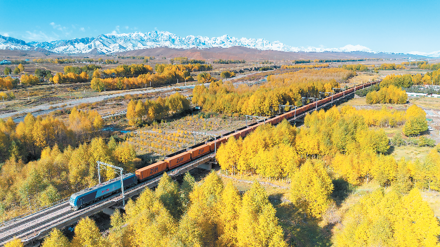 中欧班列行驶在兰新铁路上。新甘肃·甘肃日报通讯员 宋佳龙