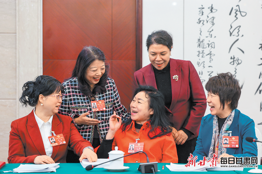3月8日,住甘全国政协委员在会议间隙热烈交流。新甘肃·甘肃日报记者 冯乐凯