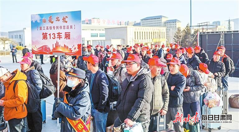 春节后的首个工作日,来自定西市的500余名务工人员,搭乘G2096次高铁务工专列前往山东省青岛市。这是甘肃省春节后开行的首趟返岗务工专列,也是定西市连续第七年开通免费返岗务工高铁专列。与此同时,兰州新区2026年“春风行动”首场万人招聘会火热进行,340多家企业提供1.1万个就业岗位,其中新材料、现代化工、装备制造等主导产业岗位占比超六成,成为吸纳就业的主力军。