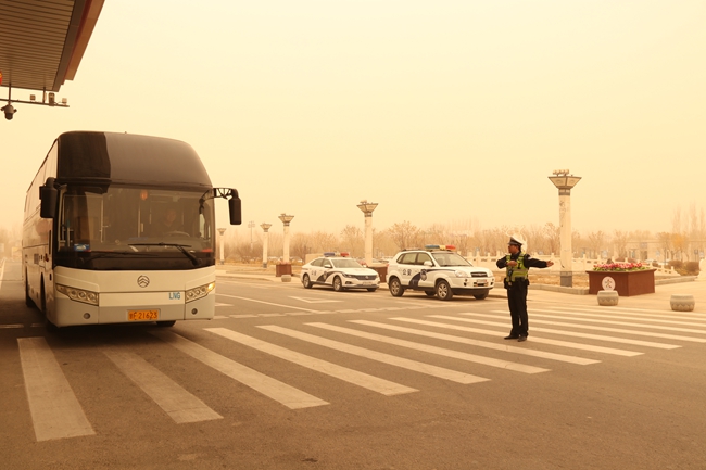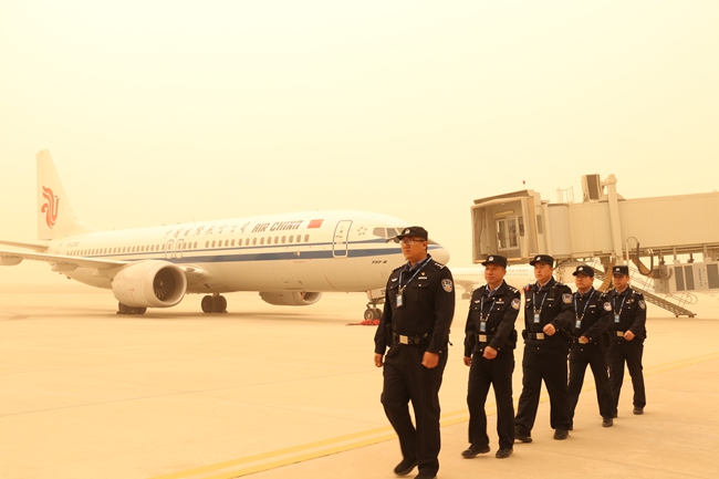 3月12日,受强冷空气影响,新疆、酒泉地区遭遇大风沙尘天气,能见度一度降至1000米以下,大量前往新疆乌鲁木齐的航班备降敦煌,给航空运行带来严峻挑战。面对恶劣天气,酒泉机场公安进一步深化“护酒泉空港、做服务先锋”党建亮点品牌实践,充分发挥党员先锋模范作用,闻令而动,迅速启动应急预案,全力做好航班备降与旅客服务保障工作,确保空中通道安全畅通。