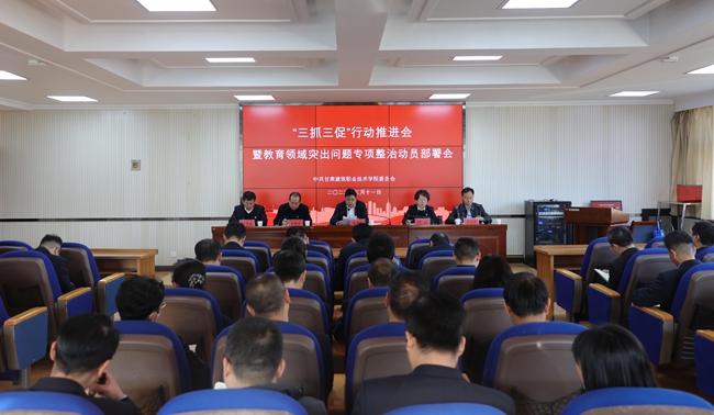 为一体推进“三抓三促”行动走深走实和教育领域突出问题专项整治落地见效,3月11日,甘肃建筑职业技术学院召开“三抓三促”行动推进会暨教育领域突出问题专项整治动员部署会。
