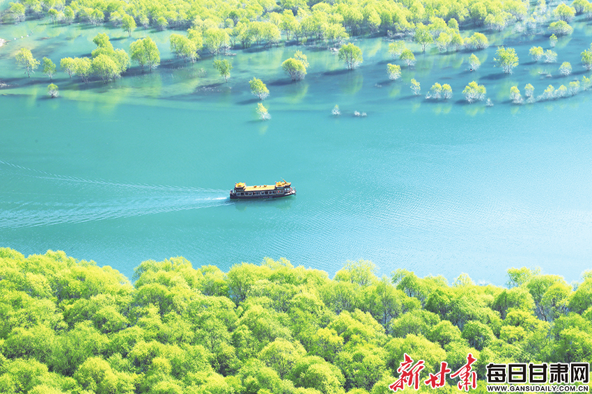 3月11日,在文县玉垒坪村,游客乘船穿越白龙江乐享春光。新甘肃·甘肃经济日报通讯员 李旭春 摄
