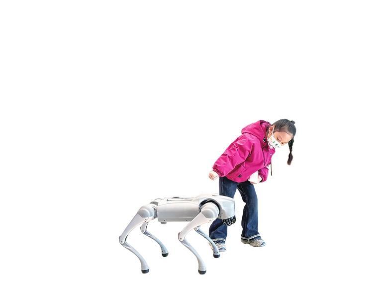小朋友被可爱的机器狗吸引。兰州新区报记者祁瑞龙 摄