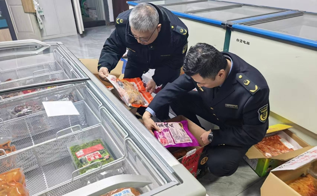 截至目前,执法人员在辖区食品流通企业冷库及市场中,对检查中发现的四川省蜀福香食品有限责任公司、成都市明扬食品有限责任公司、重庆市曾巧食品有限公司生产的涉事鸡爪产品,依法进行封存并开展进一步核查;对辖区内5家卤制鸡爪生产企业开展专项检查,并对原料鸡爪完成5批次抽样检测;对火吧中央厨房进行检测,现场抽检其制作的“泡椒凤爪”与购进食材原料生鸡爪2批次。