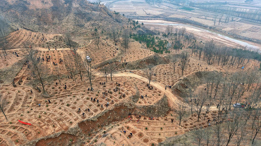 近日,灵台县2026年春季义务植树活动启动,从城镇面山到乡村道路,从荒山荒坡到公路沿线,一场全民参与的“绿色行动”在广袤大地火热展开。图为义务植树活动现场。