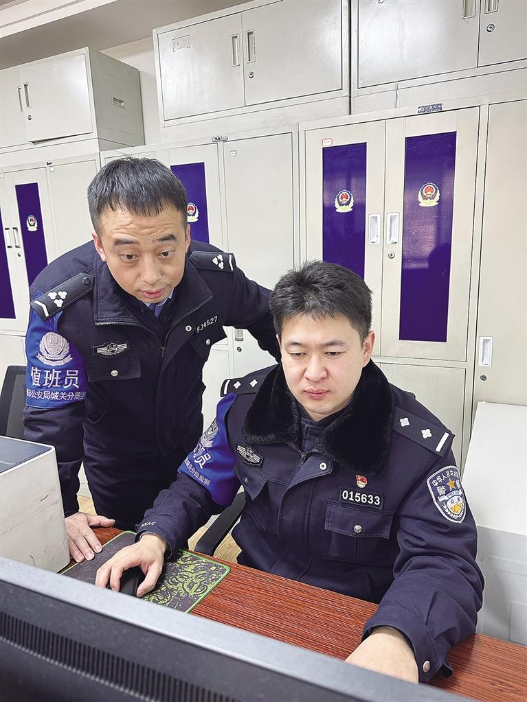 李硕秋(右)和同事研判案情