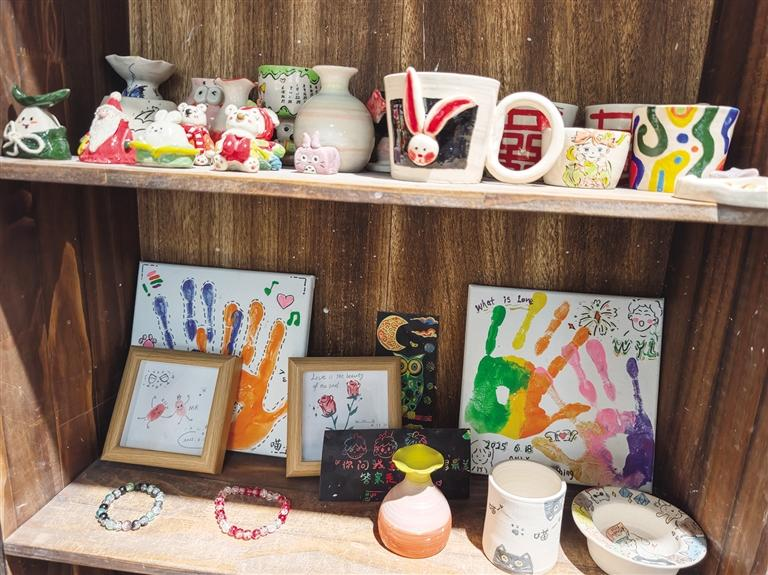 相比之下,陶艺更考验耐心。“陶艺看着简单,其实上手并不容易。”工作人员说,一个杯子从揉泥、拉坯到塑形、修整,整个过程大约需要三到四个小时。如果需要烧制、上釉、成品取货,等待时间会更长。即便如此,依然有不少爱好者愿意沉下心来,感受泥土在指尖变化的乐趣。