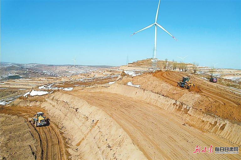 3月20日,在通渭县马营镇高标准农田建设现场,施工机械有序作业。新甘肃·甘肃日报通讯员 张赛