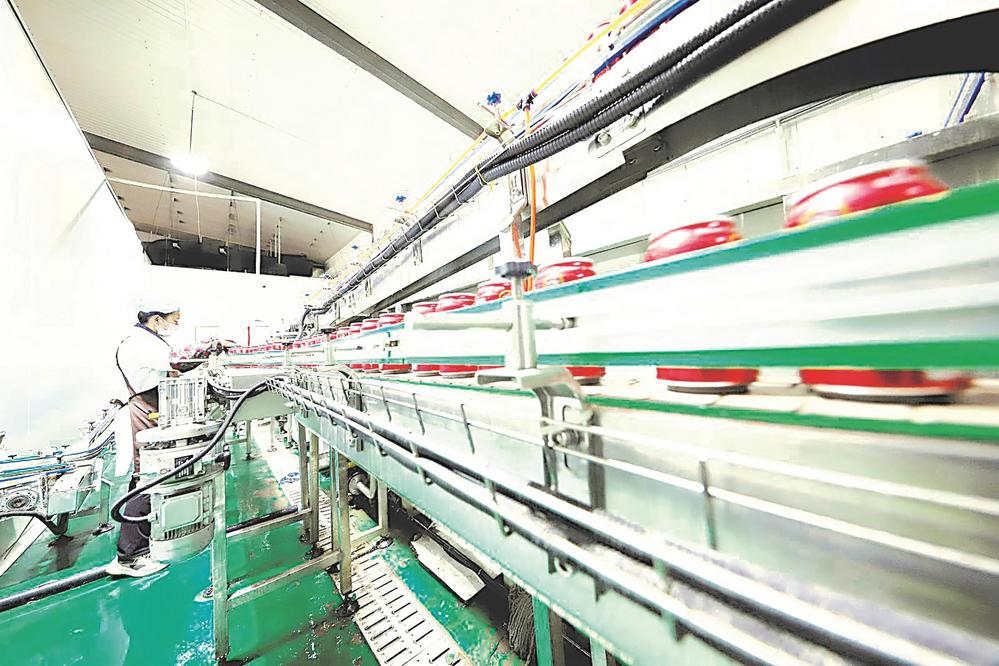 连日来,位于临泽县工业园区的甘肃自强生态农林科技有限公司智能灌装车间里,灌装机精准高效作业,瞬间完成封罐、杀菌、贴标等工序,现代化生产气息扑面而来。 张 渊 程 莉 摄