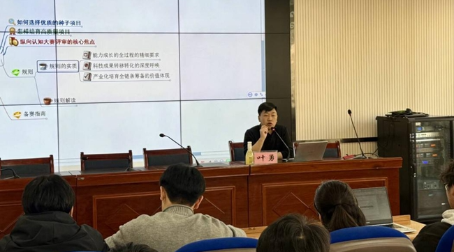 讲座中,叶勇围绕优质种子项目遴选、高质量项目培育、大赛评审和新焦点等核心内容展开深度分享。从产业痛点调研、创新思路构建、技术难点突破到商业模式设计,为同学们梳理了从创意到项目落地的完整路径。