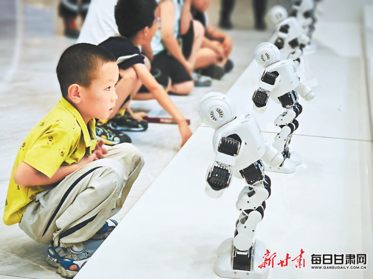 在永靖县鹭岛青少年活动中心,孩子们聚精会神观看机器人表演。新甘肃·甘肃日报记者吴涵