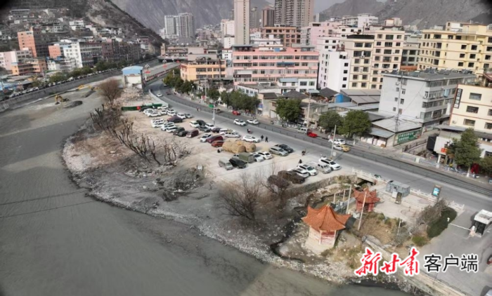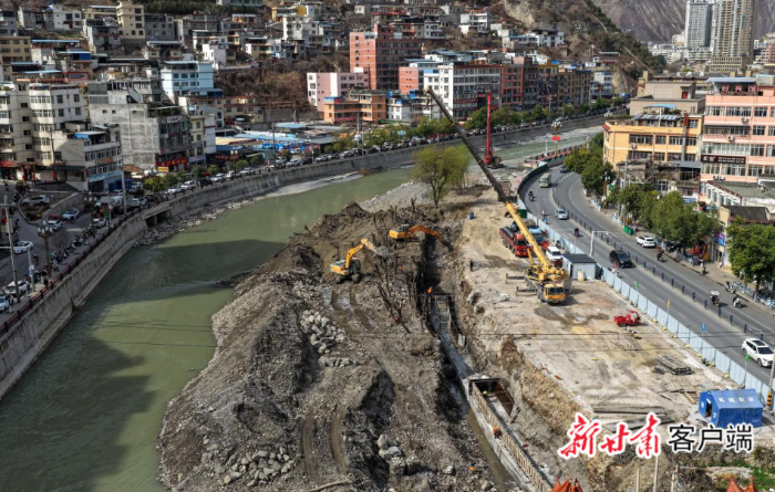 文县城区白水江畔北滨河路的施工现场。本文图片均由新甘肃·甘肃日报通讯员刘玉玺提供
