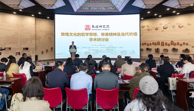 来自全国各高校、科研院所、文博机构的40余位专家学者对敦煌文化展开了多方面、多层次、多角度的深入探讨,共同推动敦煌文化研究的创新性发展。围绕敦煌文化的历史价值、敦煌文化与多元文明的交融互鉴、敦煌文化的哲学思想价值、敦煌文化的美学价值、敦煌艺术传承创新的当代价值、敦煌文化交流与传播的当代价值、敦煌文化遗产地管理等议题,敦煌研究院副院长张小刚、甘肃省敦煌哲学学会名誉会长范鹏、北京大学艺术学院教授顾春芳、敦煌研究院科研管理处处长陈港泉分别作了主旨报告,13名专家学者也进行了专题发言。