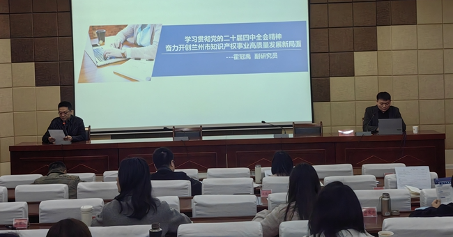 为提升全市党政领导干部知识产权保护工作的能力和水平,兰州市委党校(市行政学院)联合兰州市知识产权服务中心组织举办“学习贯彻党的二十届四中全会精神 奋力开创兰州市知识产权事业高质量发展新局面”专题培训,市委党校春季学期中青年干部培训班全体学员参加了培训 。