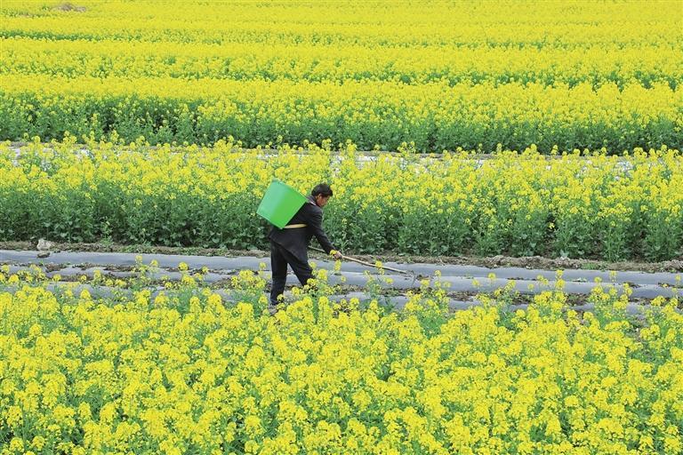 3月28日,随着气温回升,武都区白龙江沿岸油菜花盛开,农户也抢抓农时,科学开展春耕、春播、春管等各项农业生产,田间地头一片繁忙景象。本报记者 李旭春 摄